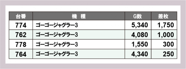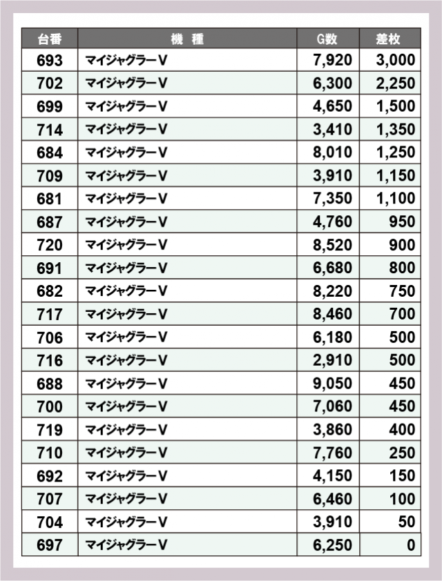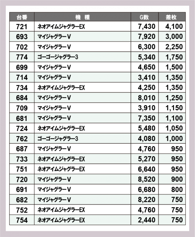ジャグラー差枚ランキング