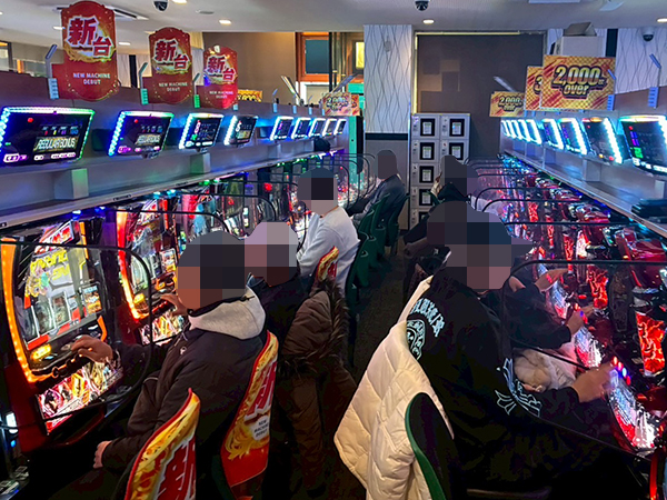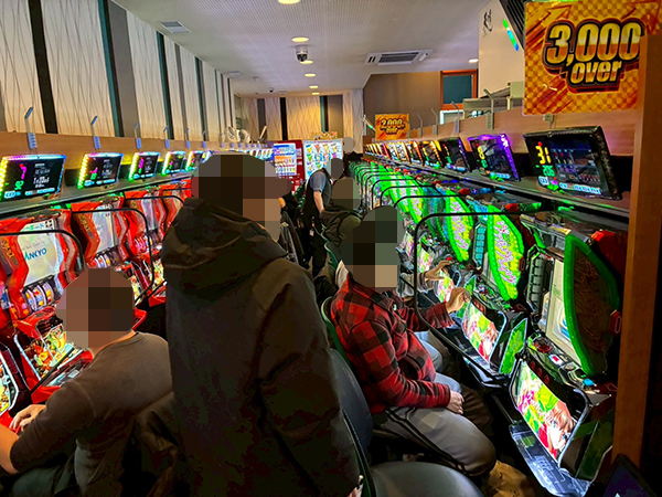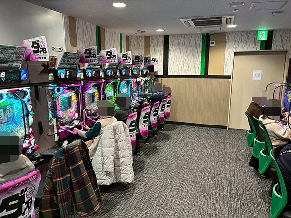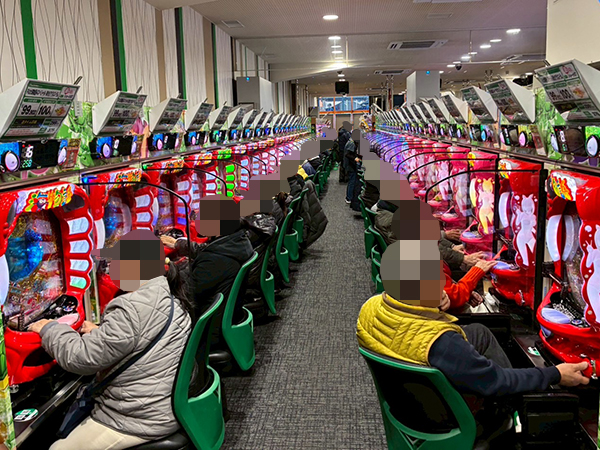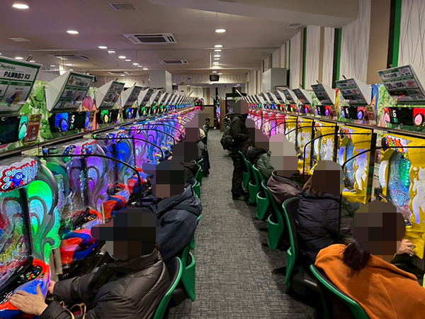 取材時は既に多くのプレイヤーであふれており、パチンコ・パチスロを問わず楽しげな表情でいっぱいだった。