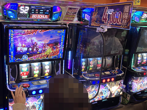500円/89枚パチスロの稼働も高い。プレイヤーたちが嬉しそうにレバーを叩く姿を目撃している。