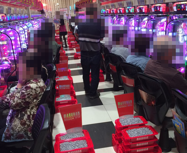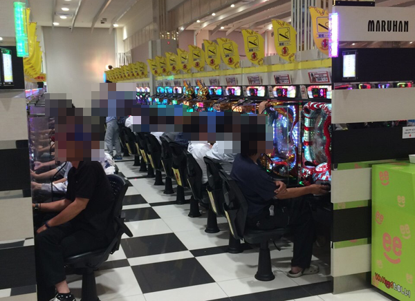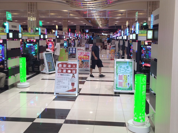 4円パチンコでは海物語シリーズなどの人気が高く、午後になるころには稼働率も9割以上。