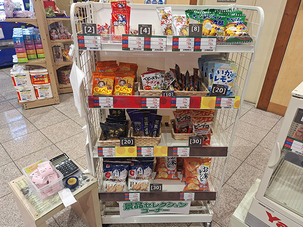 景品コーナーにはたくさんのお菓子や日用品が用意されており、プレイヤーから好評だった。