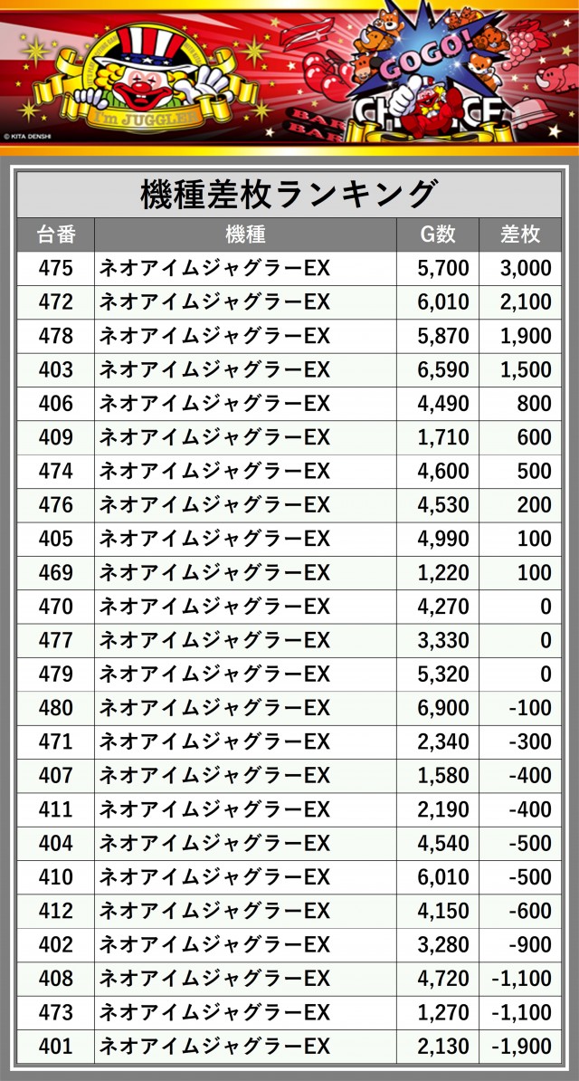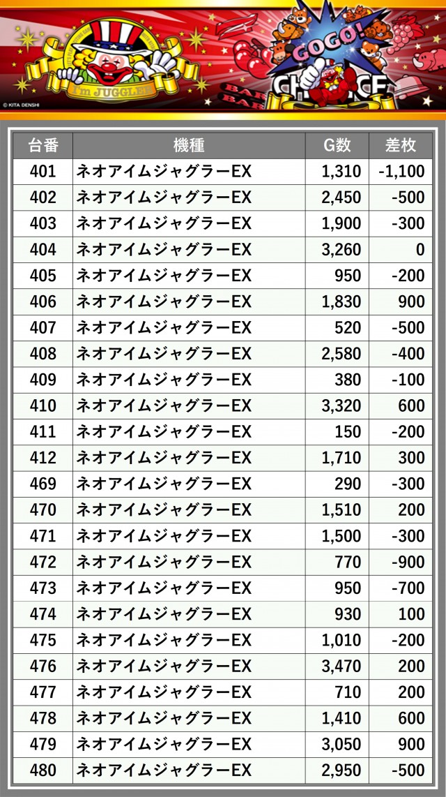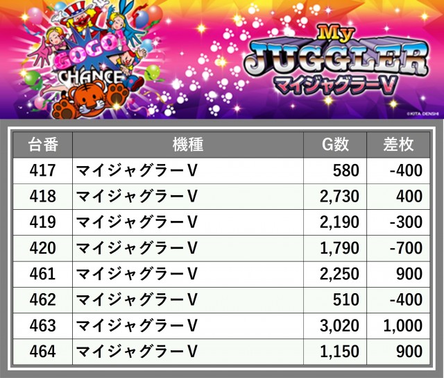 厳選された取材対象機種をはじめ、その他スロット全体から好記録が飛び出した!プレイヤーが楽しんだ1日を下記データにて振り返ってみて欲しい。