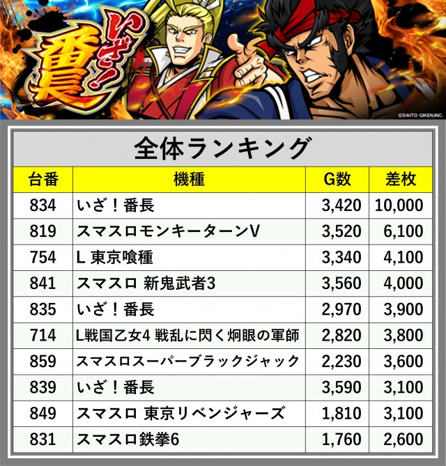厳選された取材対象機種をはじめ、その他スロット全体から好記録が飛び出した!プレイヤーが楽しんだ1日を下記データにて振り返ってみて欲しい。
