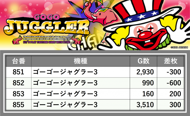 ※台番順に掲載しています