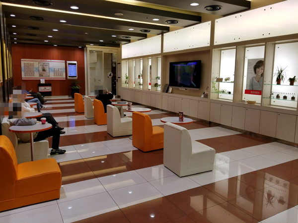 広々としたレストスペースにはソファと大型テレビを完備。清潔に保たれていて、ゆっくりとくつろげる空間となっている。店内は隅々にまで清掃が行き届き、ゴミなどは一切見当たらなかった。
