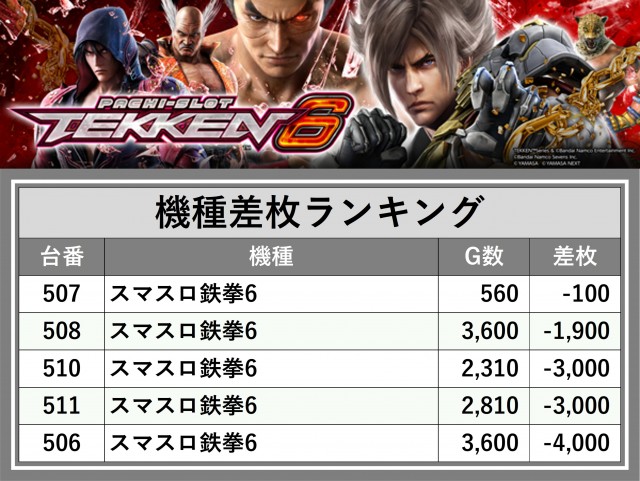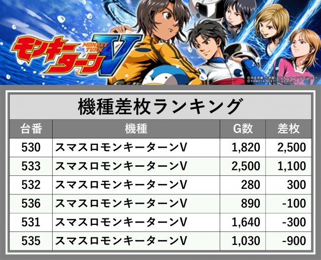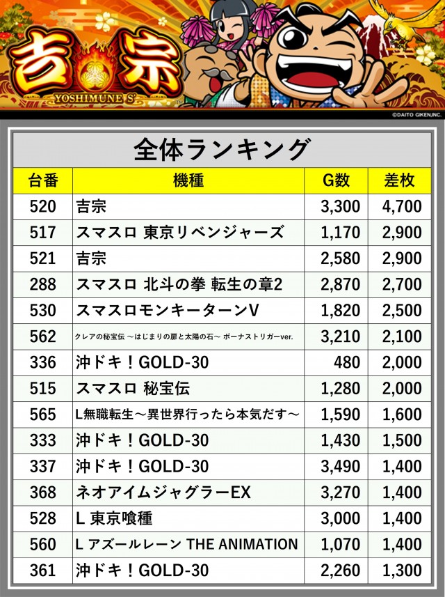 ※差枚数順に掲載しています