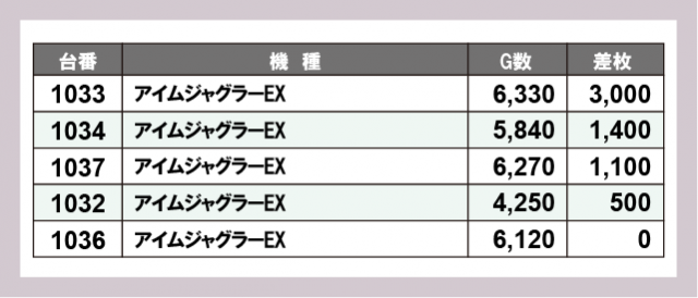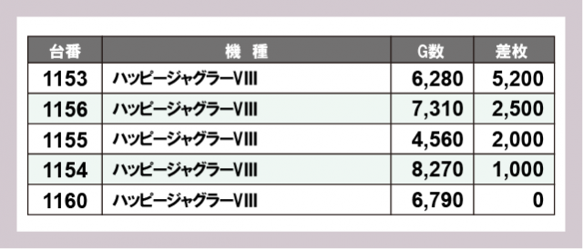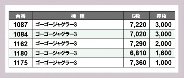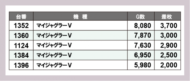 ※差枚数順に掲載しています