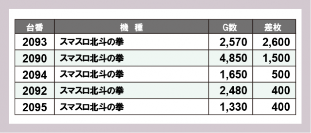 ※差枚数順に掲載しています