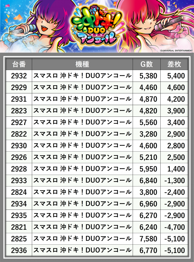 ※台番順に掲載しています