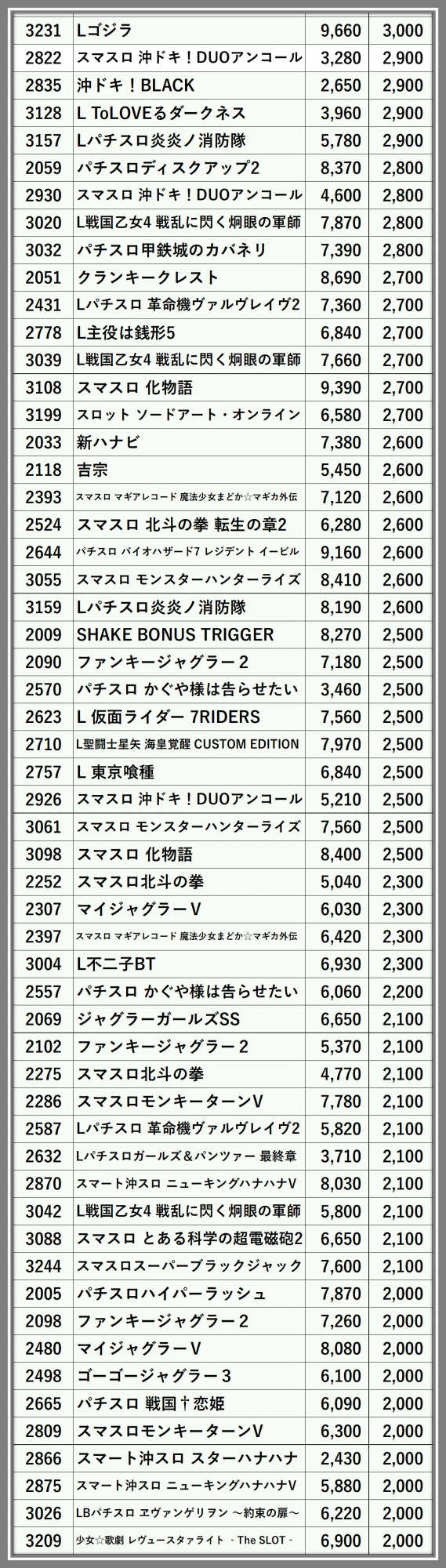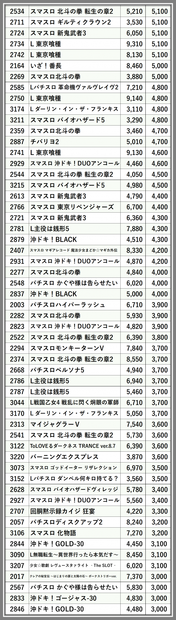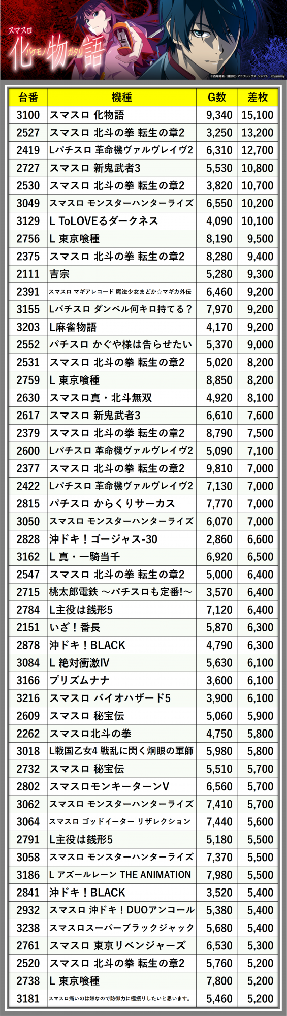 ※差枚数順に掲載しています