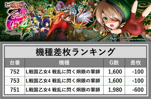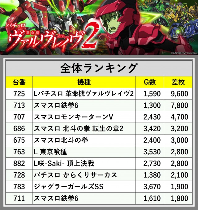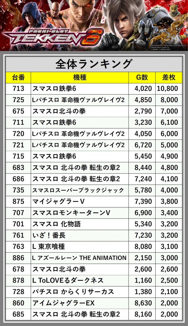 ※差枚数順に掲載しています