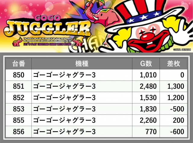 ※台番順に掲載しています