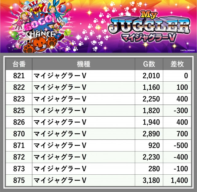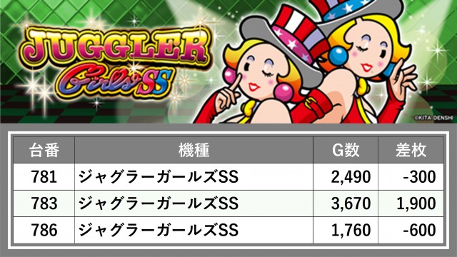 厳選された取材対象機種をはじめ、その他スロット全体から好記録が飛び出した!プレイヤーが楽しんだ1日を下記データにて振り返ってみて欲しい。