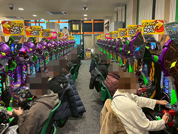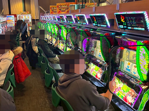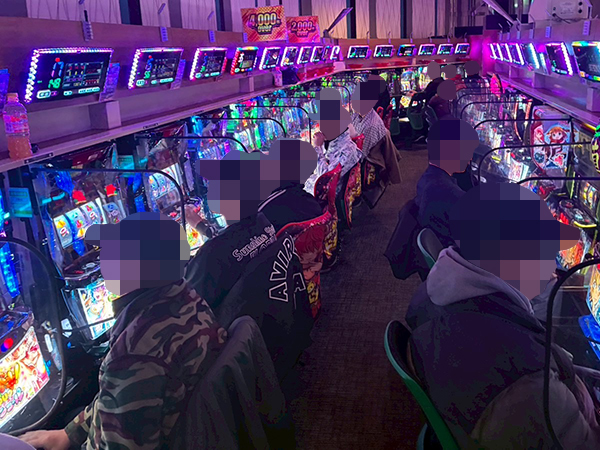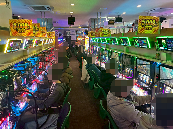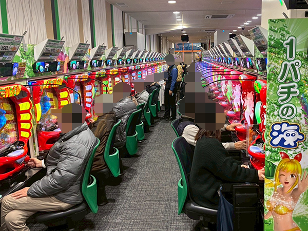 14時ごろの100円/89玉パチンコでは「PA大海物語4スペシャル Withアグネス・ラム」をはじめとする甘海シリーズや、「PAコマコマ倶楽部 with 坂本冬美 ごらくバージョン」などの自社開発機で好調なプレイヤーが多数見受けられ、時折見せる嬉しそうな表情が印象に残っている。