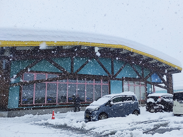 この日はあいにくの雪景色。取材時には既に多くのプレイヤーが詰めかけており、ホール全体ににぎやかなムードが漂っていた。
