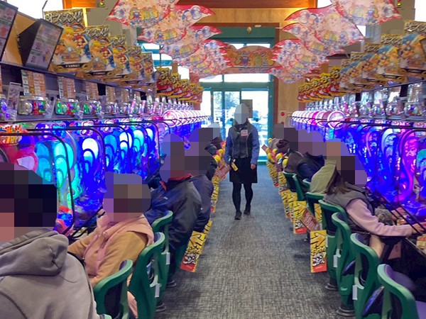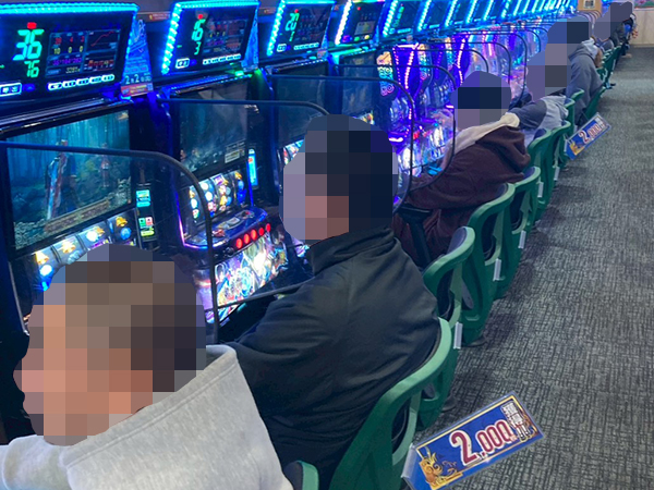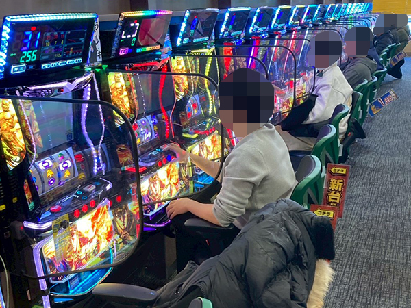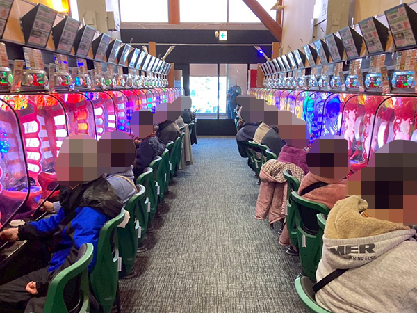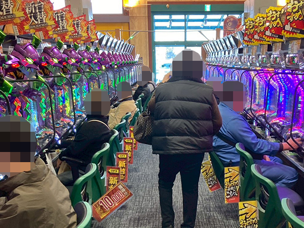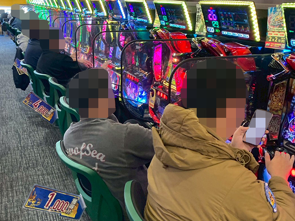 取材時は既に多くのプレイヤーが集結し、パチンコ・パチスロを問わずにぎやかな状況となっていた。