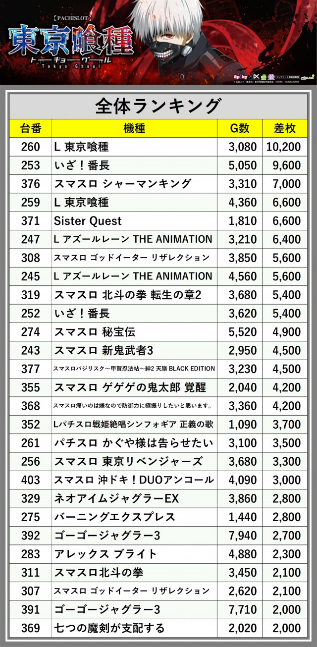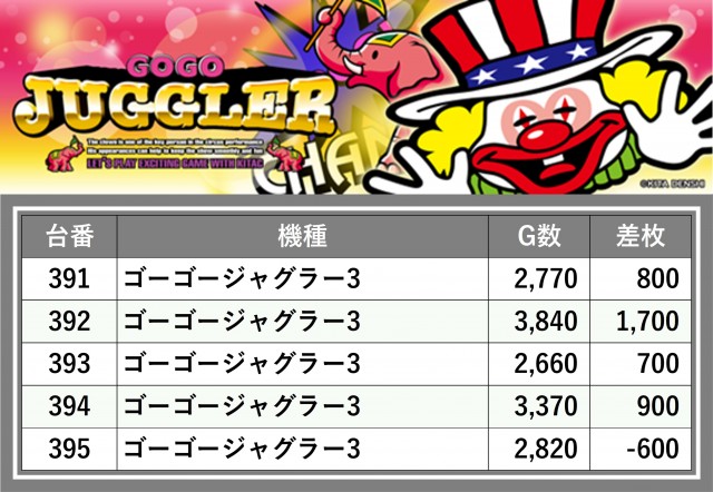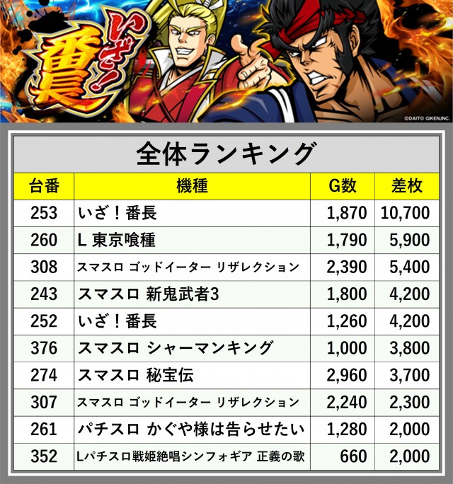 厳選された取材対象機種をはじめ、その他スロット全体から好記録が飛び出した!プレイヤーが楽しんだ1日を下記データにて振り返ってみて欲しい。