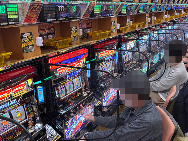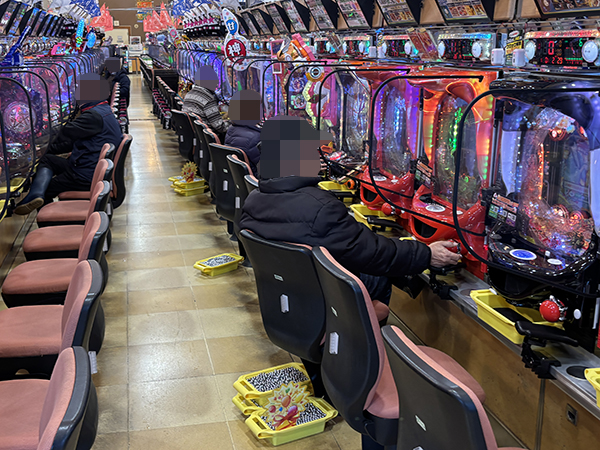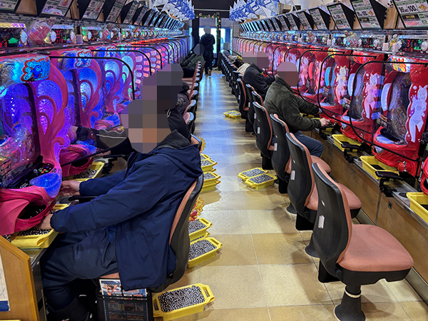15時ごろの100円/89玉パチンコでは、「PA大海物語5 Withアグネス・ラム」をはじめとする海物語シリーズや甘デジのシマから活気が感じられ、プレイヤーのイキイキとした表情が印象に残っている。