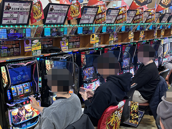 「スマスロ 北斗の拳 転生の章2」や「スマスロ北斗の拳」も大盛り上がり。機種の醍醐味を味わうプレイヤーを複数目にしている。