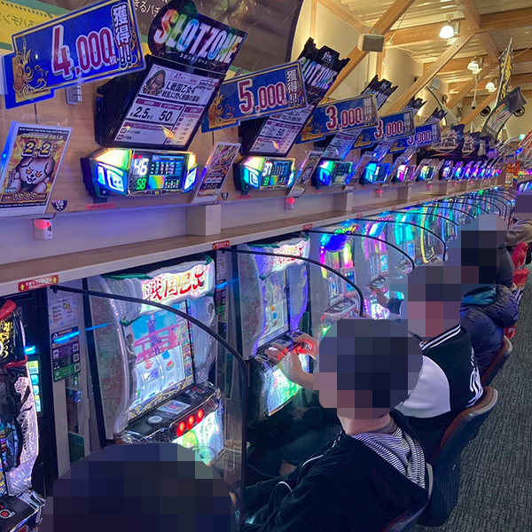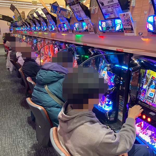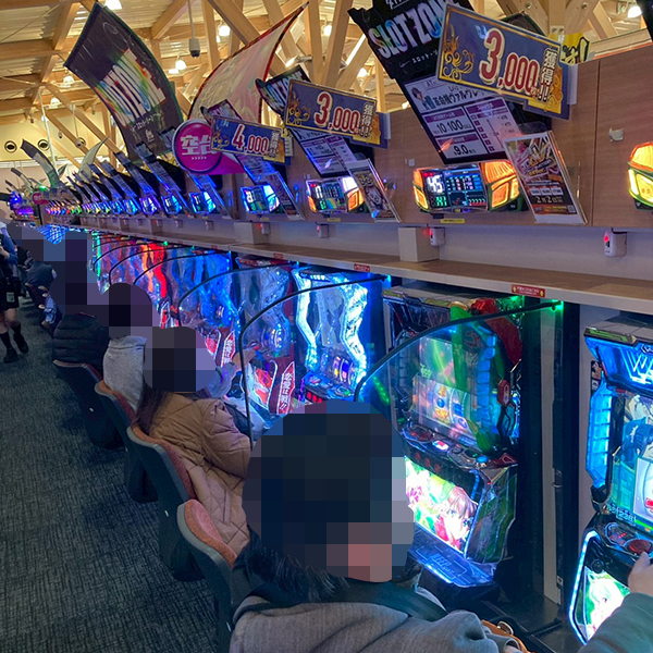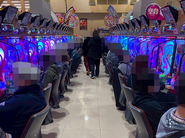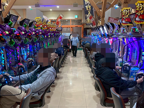 取材時は既に多くのプレイヤーが集結し、パチンコ・パチスロを問わずにぎやかな状況となっていた。