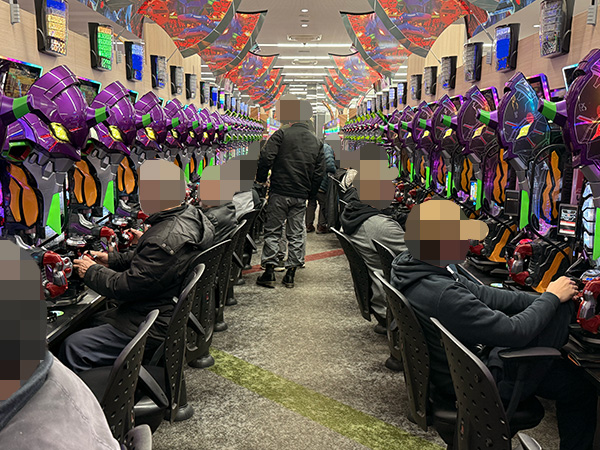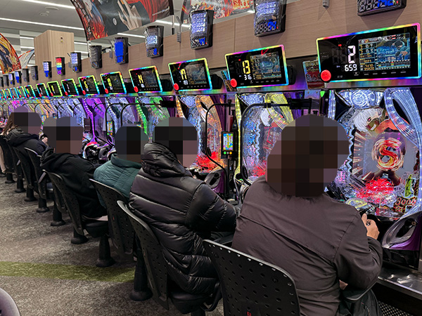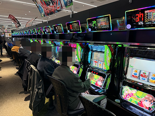 店内には老若男女を問わずプレイヤーが集合。パチンコ・パチスロの各シマから活気が感じられた。