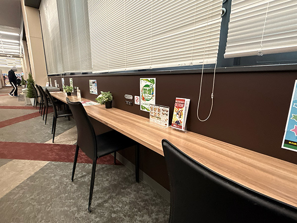 同店は椅子とテーブルが並ぶレストスペースを完備。休憩時間などで利用すれば、有意義なひと時を過ごせるはずだ。