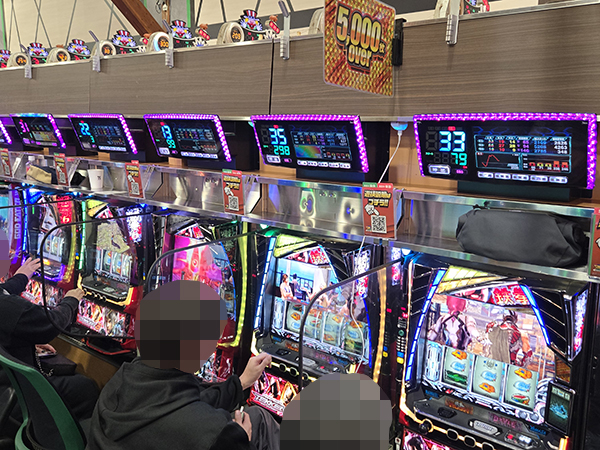 「Lパチスロ 革命機ヴァルヴレイヴ2」や「スマスロモンキーターンV」、「スマスロ 沖ドキ!DUOアンコール」では、機種の魅力を堪能するプレイヤーを確認。シマ中に明るい雰囲気が広がっていた。
