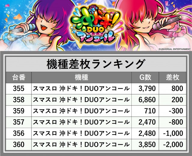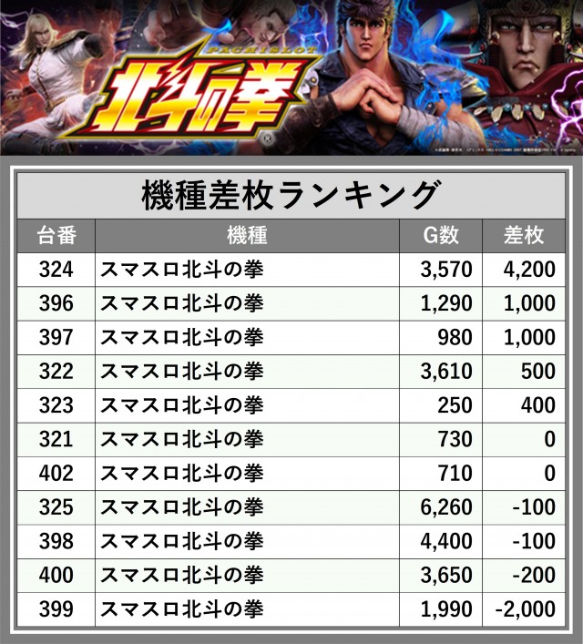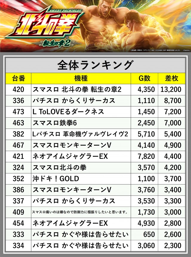 ※差枚数順に掲載しています