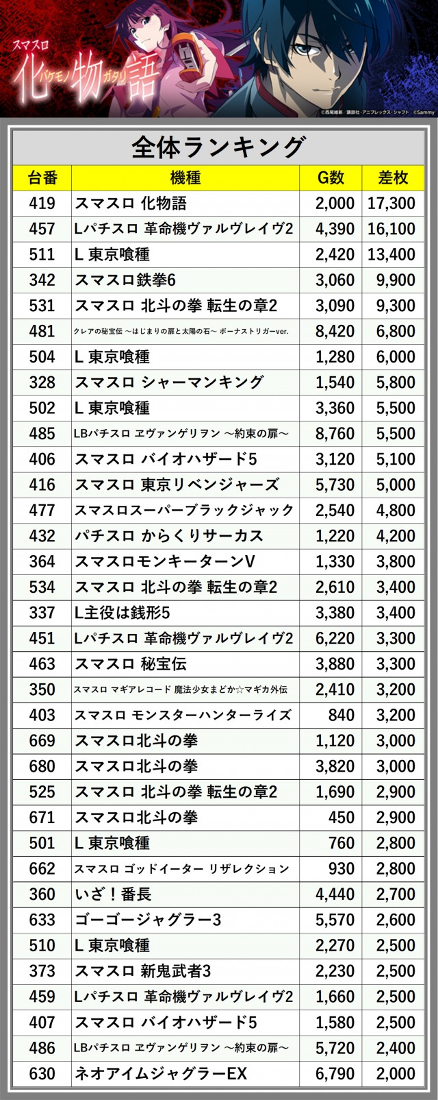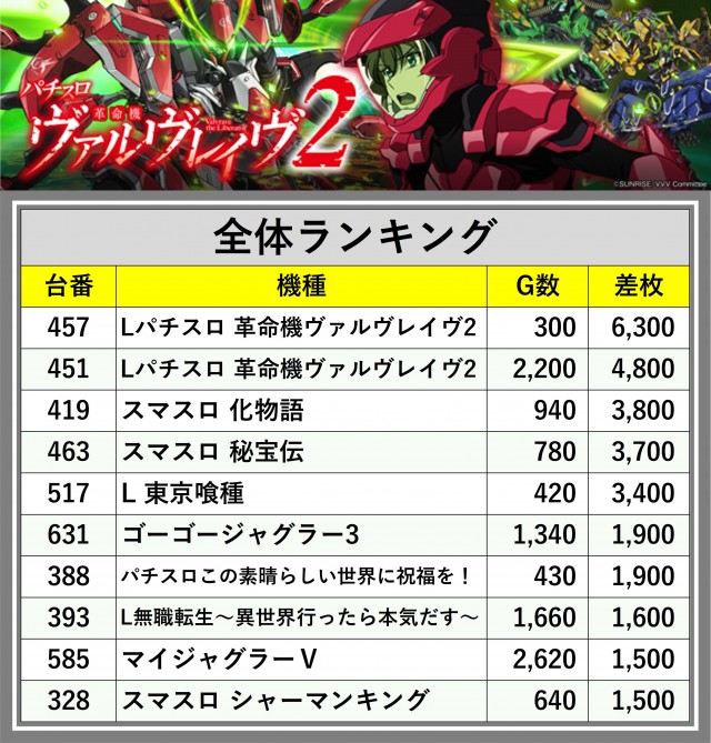 厳選された取材対象機種をはじめ、その他スロット全体から好記録が飛び出した!プレイヤーが楽しんだ1日を下記データにて振り返ってみて欲しい。