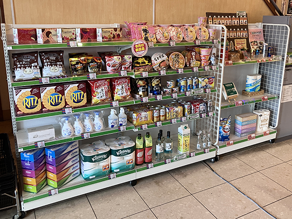 景品コーナーには日用品・インスタント食品・酒類など多彩なアイテムが揃っており、プレイヤーたちの目を引いていた。