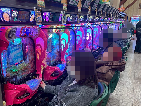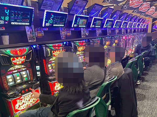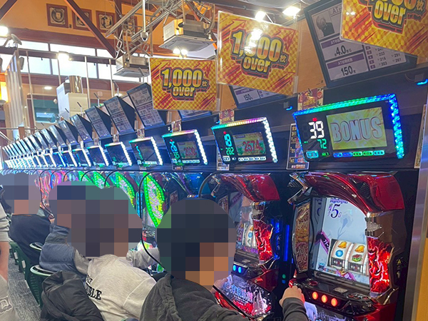 500円/90枚パチスロに目を移すと、楽しそうにレバーを叩くプレイヤーの姿が至る所で見られた。