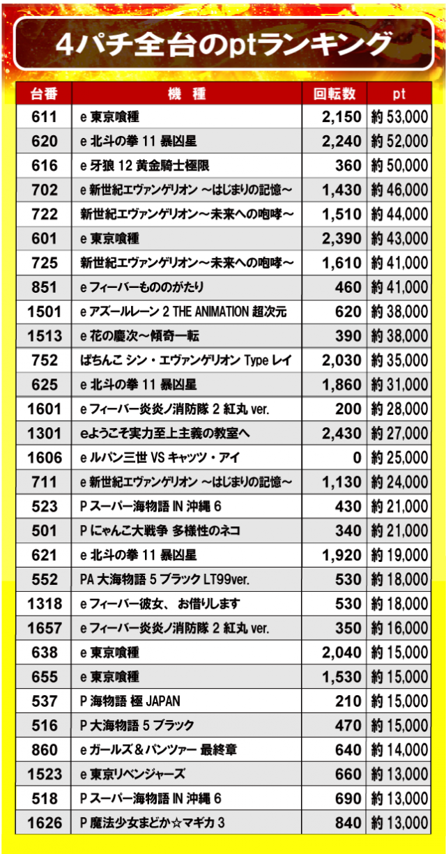 ②4パチ全台のptランキング