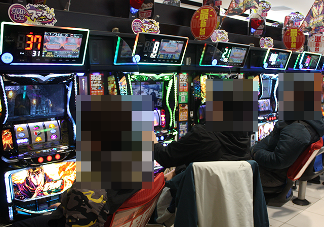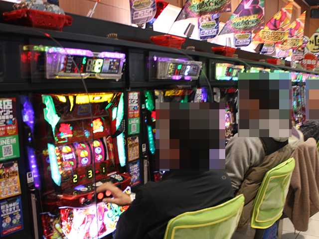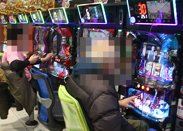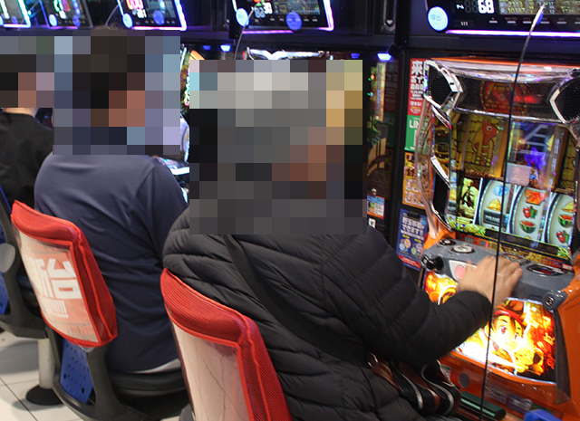 「スマスロ 北斗の拳 転生の章2」は空き台がみあたらず、楽しそうに遊技をおこなっている姿が並んでいた。