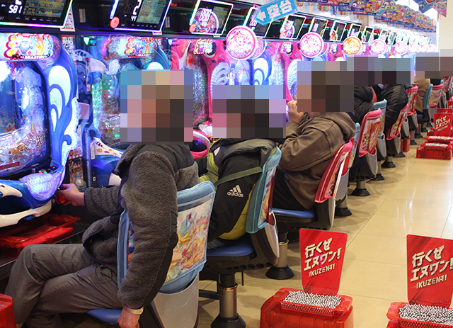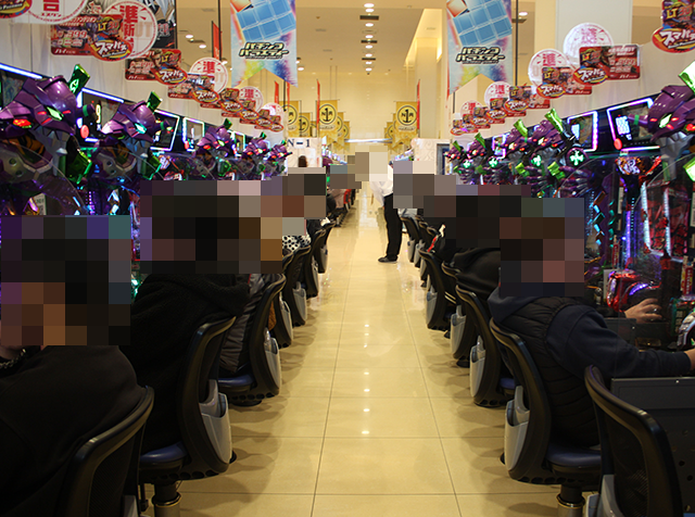 パチンコとパチスロのどちらにも、にぎやかな光景が広がっていた。