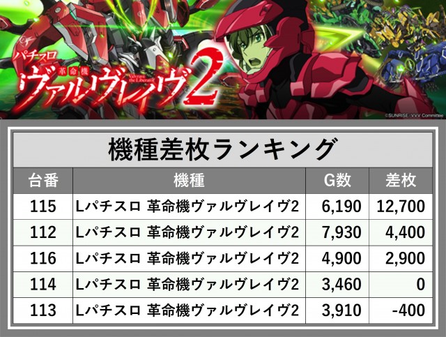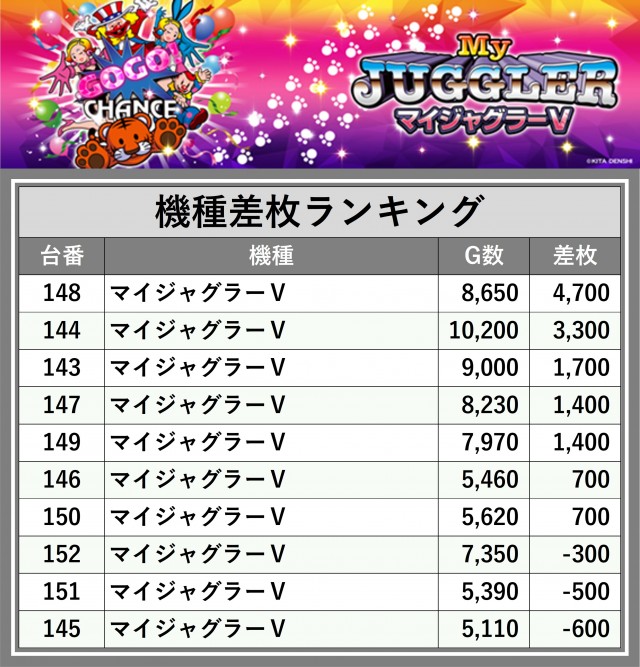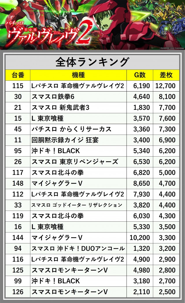 ※差枚数順に掲載しています