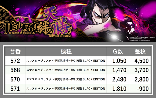 厳選された取材対象機種をはじめ、その他スロット全体から好記録が飛び出した!プレイヤーが楽しんだ1日を下記データにて振り返ってみて欲しい。