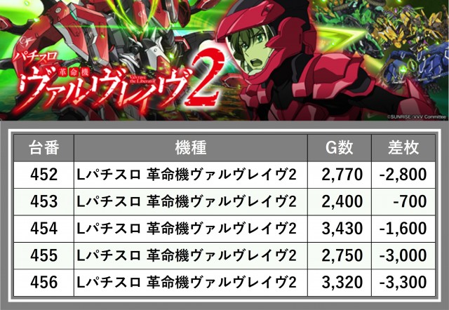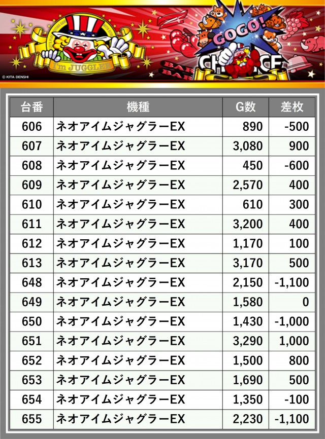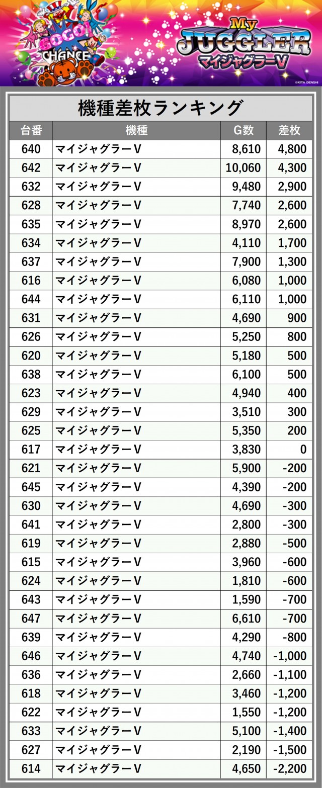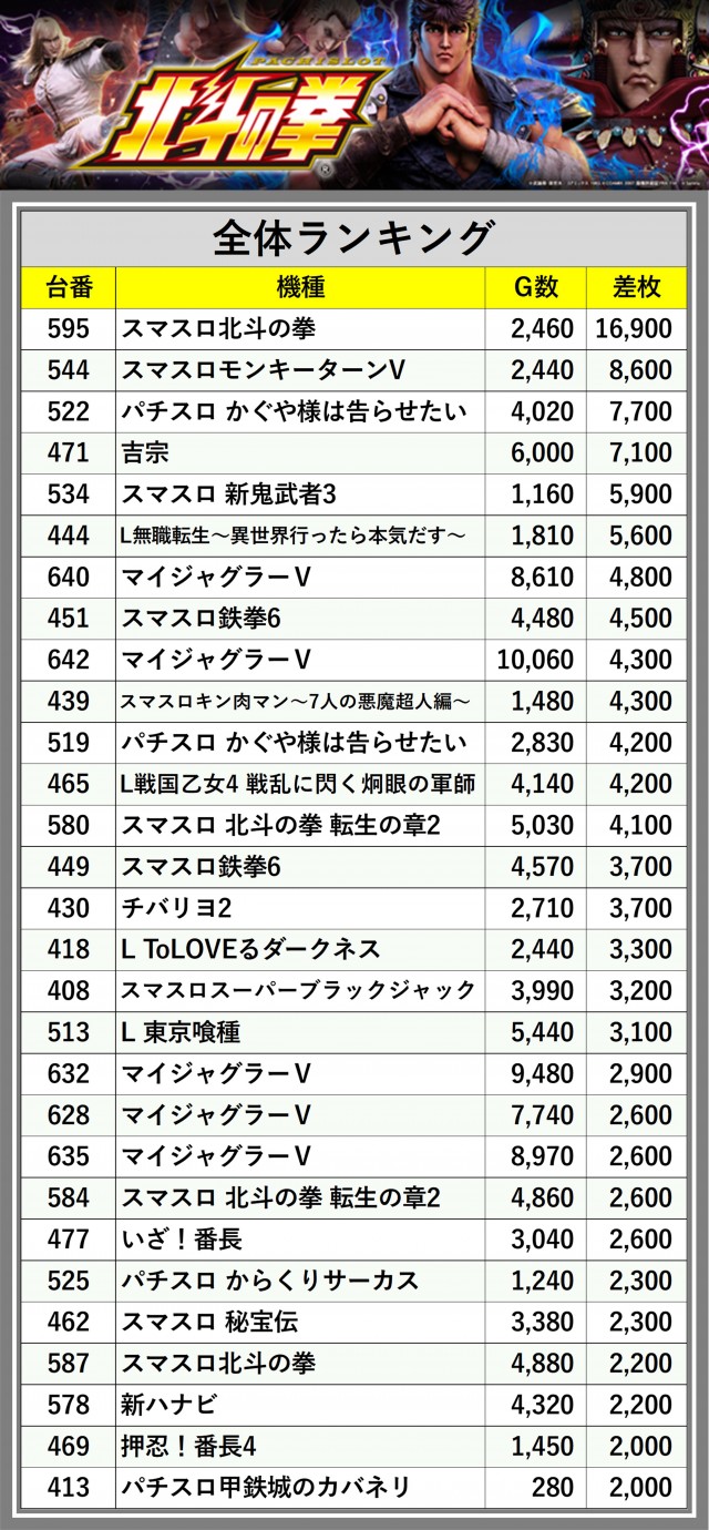※差枚数順に掲載しています
