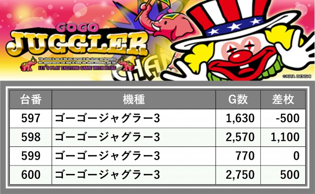 厳選された取材対象機種をはじめ、その他スロット全体から好記録が飛び出した!プレイヤーが楽しんだ1日を下記データにて振り返ってみて欲しい。