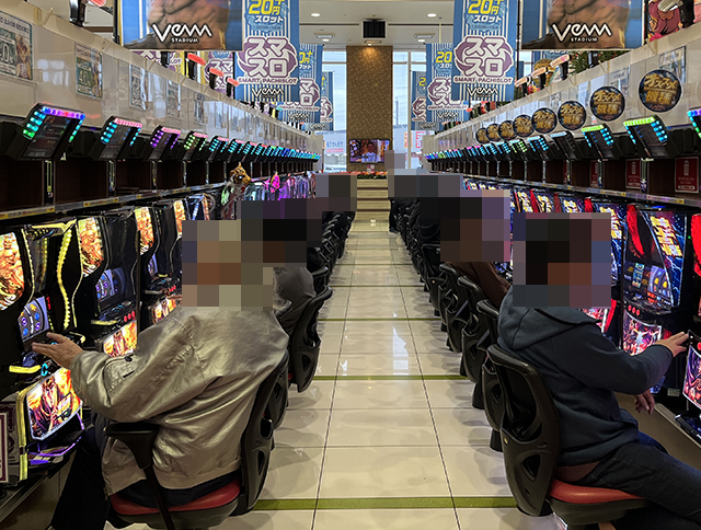 パチンコとパチスロの両方に、インパクトのある光景が広がっていた「VEAM見附店」。