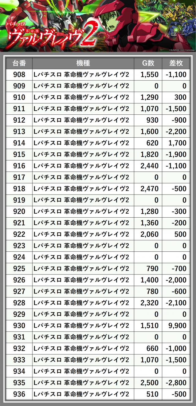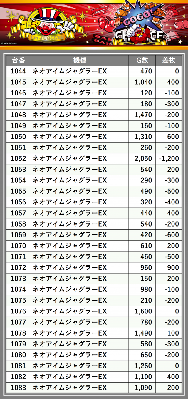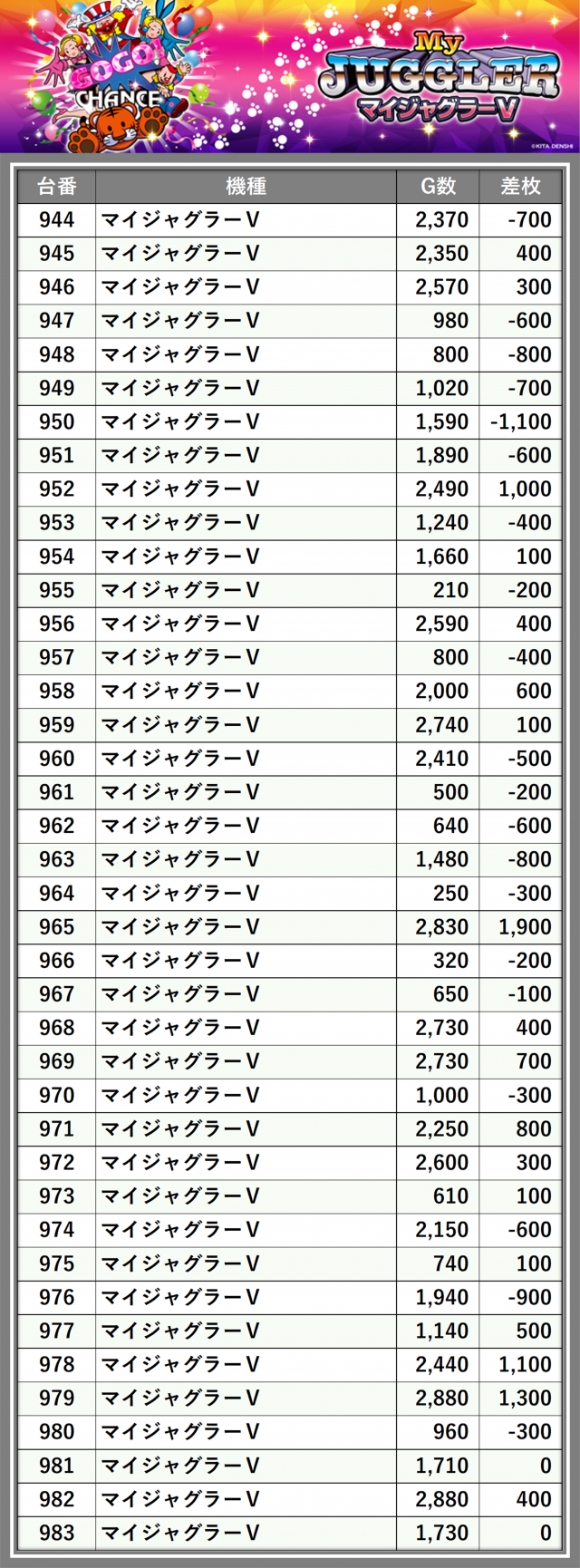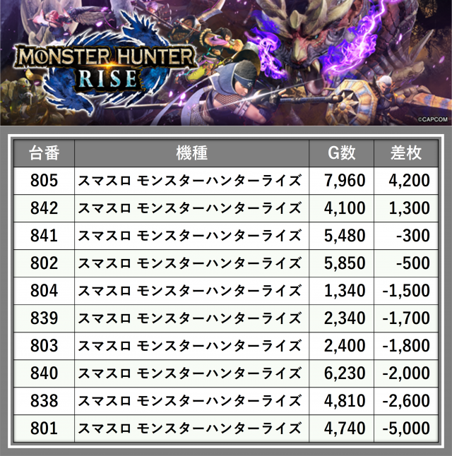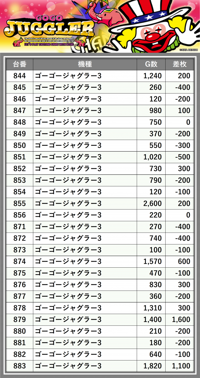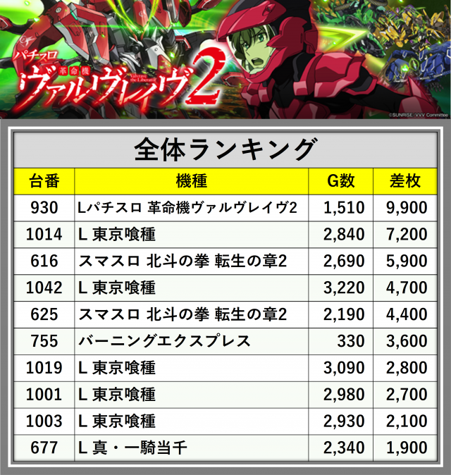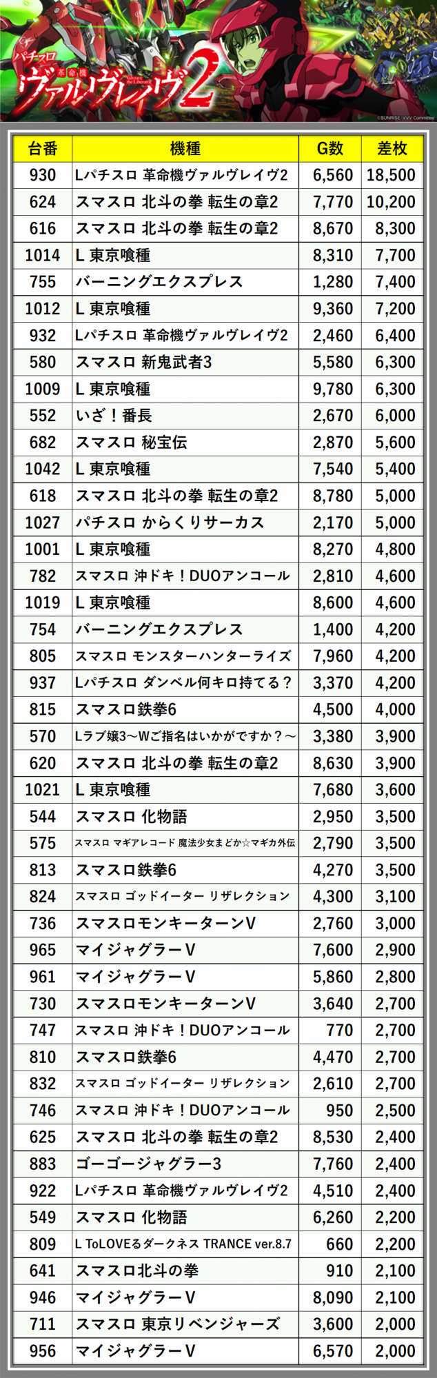 ※差枚数順に掲載しています