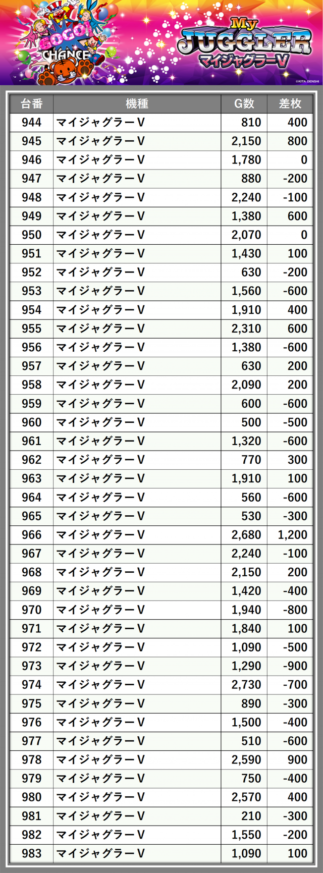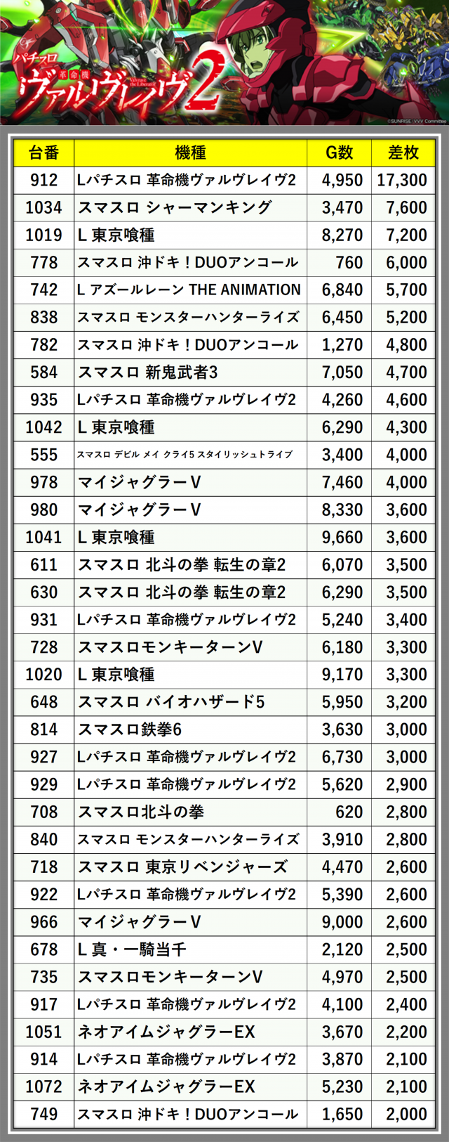 厳選された取材対象機種をはじめ、その他スロット全体から好記録が飛び出した!プレイヤーが楽しんだ1日を下記データにて振り返ってみて欲しい。