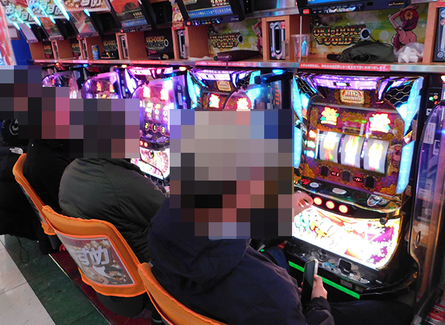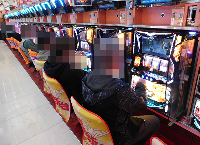 取材時は全台が埋まり、うれしそうに遊技をおこなっている姿が並んでいた。