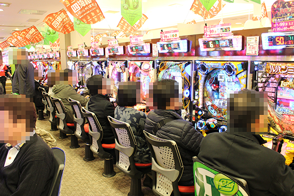 オープン直後、「バジリスク~甲賀忍法帖~絆」や「CRぱちんこ必殺仕事人V」で遊技を始めるプレイヤーの姿が目立った。