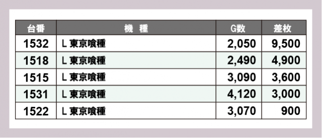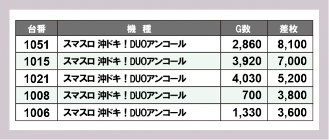 ※差枚数順に掲載しています