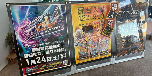 1月24日(土)ロイヤル釧路店にて、DMMぱちタウンの新感覚取材「スロセレ」を実施。