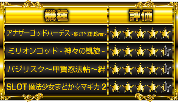 アナザーゴッドハーデス…一撃の大きさと箱の使用率の高さ。星5個