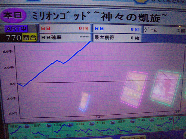 「ミリオンゴッド-神々の凱旋-」にグラフの枠を飛び超えるほどの勢い!