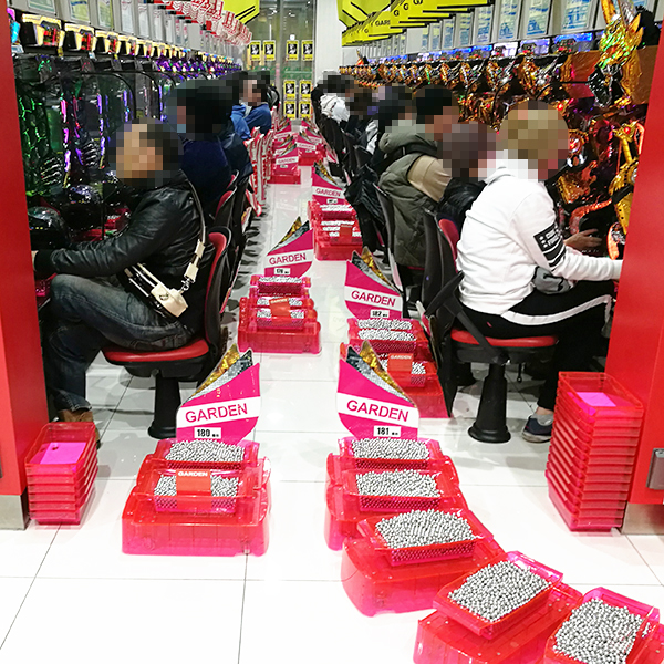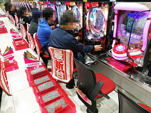 1.04円・1000円/1920玉・1000円/4800玉といった低貸し玉パチンコは、全体的に高稼働。ほぼ満席に近い盛況ぶりだった。