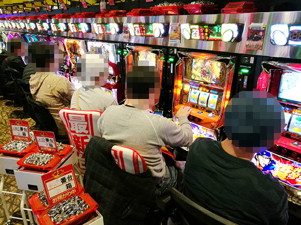 取材時は多くのプレイヤーが遊技をおこなっており、パチンコ・パチスロを問わず、各シマ笑顔であふれていた。