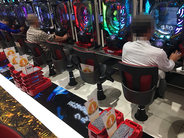 15時ごろの4円パチンコでは、「CR牙狼GOLDSTORM翔」が人気。機種の性能を最大限に引き出しているプレイヤーの姿に注目が集まっていた。